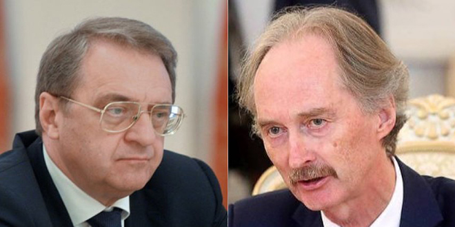 Russian President’s Special Envoy to the Middle East and Africa, Deputy Foreign Minister Michael Bogdanov and the UN Chief’s Special Envoy for Syria Geir Pedersen on Friday discussed the situation in Syria.