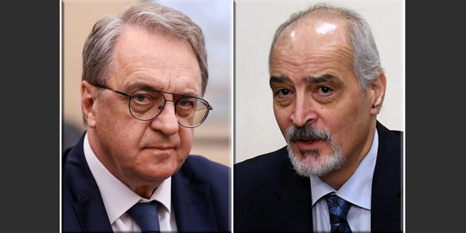 Moscow, (ST) – The Special Representative of the Russian President for the Middle East and African Countries, Russian Deputy Foreign Minister Mikhail Bogdanov discussed with the Syrian Ambassador to Moscow, Dr. Bashar Al-Jaafari, the latest developments in Syria.
