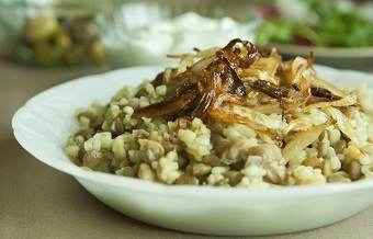 3- Meanwhile, bring vegetable oil to high heat in a different frying pan. Add 2 sliced onion and keep frequent stirring until onions become crispy and golden brown. Pour bulgur and lentils in serving plate. Add fried onions on the top. Serve hot with fresh yogurt or salad on the side.