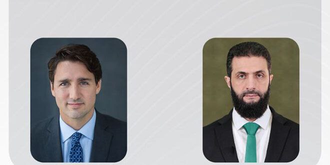 President Ahmad Al-Sharaa received a phone call from the Canadian Prime Minister Justin Trudeau.