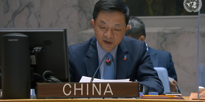 New York, (ST) – China’s Deputy Permanent Representative to the United Nations Dai Bing affirmed that his country’s position on the humanitarian issue in Syria is consistent and clear. He pointed out that Beijing has always stressed that humanitarian aid to Syria should respect the sovereignty of the Syrian state.