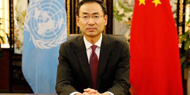 The Chinese diplomat called for an end to the illegal presence of foreign forces in Syria, and to lift the illegal unilateral coercive measures imposed on Syria.