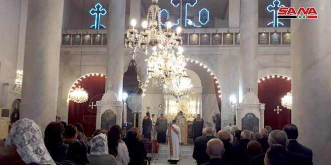 In his sermon, Priest Zaour reviewed the great victories realized by the Syrian Arab Army and the failure of the conspiracies hatched against the Syrian people who rally behind their wise leadership praying to God Almighty to protect Syria, its people and leader.