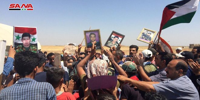 Some demonstrators told SANA that the locals in the village back the Syrian Arab Army’s heroic efforts to eliminate terrorism and expel the occupying forces from Syria.