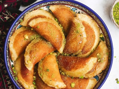 They are called the pancakes of Syria. The qatayef or Atayef sit on all tables during the holiday season of Ramadan.