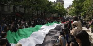 Protesters chant “Free Palestine” at Paris’s Sorbonne University