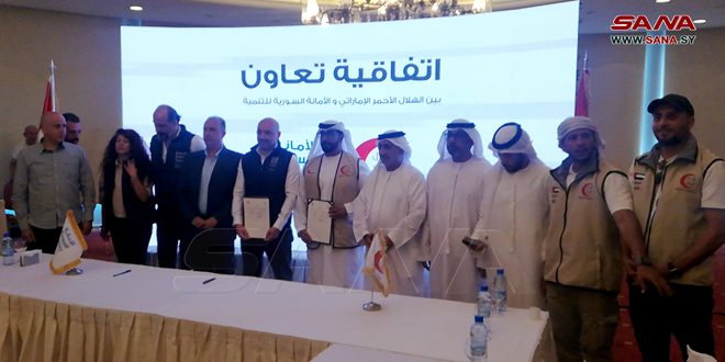 Damascus- (ST)- The Syria Trust for Development and the Emirates Red Crescent signed a cooperation agreement in the humanitarian field for a period of five years, with the aim of empowering local communities in Syria that were affected by the repercussions of the long years of war and the earthquake of February 6.