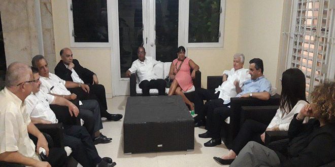 The Syrian Ambassador to Cuba Edris Maya met a number of ambassadors of friendly countries in Havana during which Rodríguez Camejo hailed the historic ties which connect Syria and Cuba, affirming that Cuba’s stance at the international circles will always remain by the side of Syria.