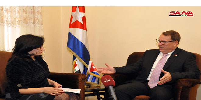 accordingto SANA, the Cuban Ambassador affirmed that cooperation and coordination between the two countries reached high levels, and they have engaged together in real diplomatic battels as Damascus and Havana have had unified stances at the international circles and the regional forums.