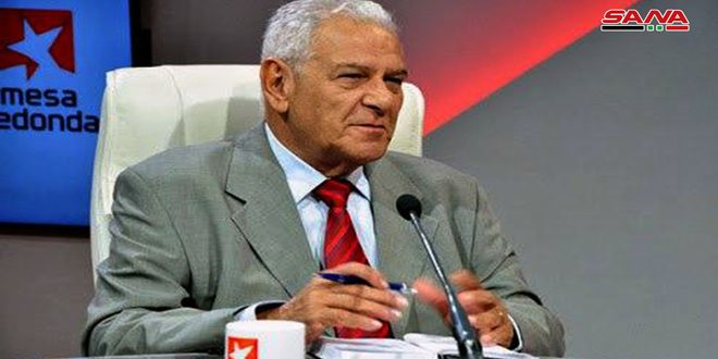 The Cuban journalist noted that “Syria will press ahead with its battle to liberate its land from terrorism and preserve its sovereignty and territorial integrity regardless of the unilateral coercive measures imposed by Washington to impede the country’s reconstruction process.
