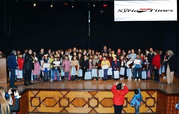 The event,  held by the Child Culture Directorate of the Culture Ministry , aimed to honor the children from Lattakia who had participated in the ministry’s annual artistic and culture competitions for the year 2020 which covered the art of painting and calligraphy, in addition to story , poetry and essay writing as well as photography.  Participants in the competitions were children aged 7-18 years representing all Syrian provinces.
