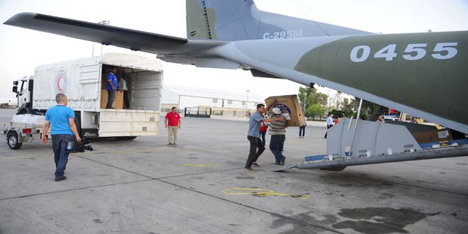 DAMASCUS, (ST)- A plane carrying humanitarian aid from the Czech Republic to the Syrian people arrived Sunday evening at Damascus Airport.