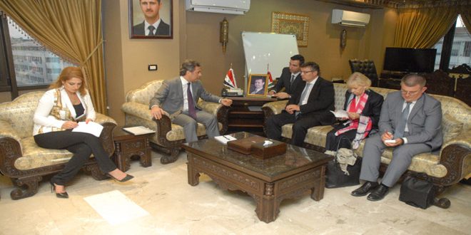 DAMASCUS- Economy Minister Adib Mayaleh discussed with the Deputy Minister of Foreign Affairs of the Czech Republic Martin Tlapa the economic ties between the two countries and the Czech Republic’s assistance in the reconstruction era in Syria.