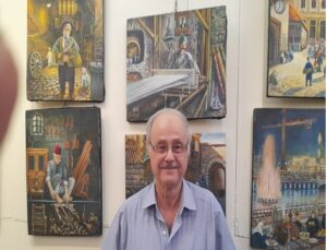 Nazir Baroudi, who is a  plastic artist, participates with19 works. He told Syria times that his paintings depict the old handicrafts which some  have disappeared, beside  the Damascene lanes, the tramway, gates of Damascus  and  Damascus International Fair