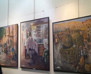 I like to participate in this exhibition because I want to  revive the Damascene heritage ,and most of my paintings are realistic but I added something from my imagination to them” Nazir added.