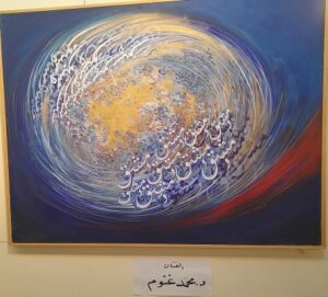 Plastic Artist Dr. Mohamed Ghanoum displays five calligraphy paintings “I want to say through my paintings that Damascus is endless in its beauty ”.