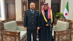 Defense Minister receives Saudi Ambassador in Damascus Domestic Newsfeature On Jan 25, 2025 Share DAMASCUS, JAN.25, (ST)- Today, the Minister of Defense, Major General Murhaf Abu Qasra, received the Saudi Ambassador in Damascus, Faisal Al-Mujfel. #syria_times Share FacebookTwitterWhatsAppEmail
