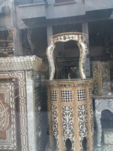 “There was a workshop in each alley in the old city of Damascus…. There were thousands of workshops, while the number of workshops now declined to scores. Moreover, many workshops transferred from Damascus to Damascus countryside (Erbin, Jobar, Jaramana, Zamalka, Biet Sahem areas) after the residents of these areas had learned in Damascus how to make wooden mosaic pieces,” Mr. Arbash said.
