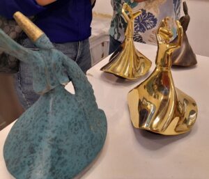 The artist Badie has been practicing sculpture for ten years and he held exhibitions in Beirut and Dubai. He only used bronze in his sculptures because for him the bronze lasts longer.