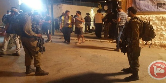 According to Wafa News Agency, the Israeli occupation forces stormed the village and opened fire towards the Palestinians, wounding two of them. They also stormed Al-Amari refugee camp and fired bullets and poison gas bombs.