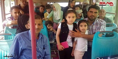 Dozens of Syrian families displaced due to the terrorist acts have returned from Lebanon to Syria through the Jussiyah crossing in al-Qusair countryside in Homs, according to SANA correspondent in Homs.