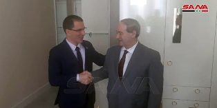Dr. al-Mikdad also met with the president of the International Red Cross Committee Peter Maurer. The two sides expressed satisfaction over bilateral cooperation and stressed the necessity of intensifying efforts to face the increasing humanitarian challenges resulting from the latest developments in the north-eastern region.