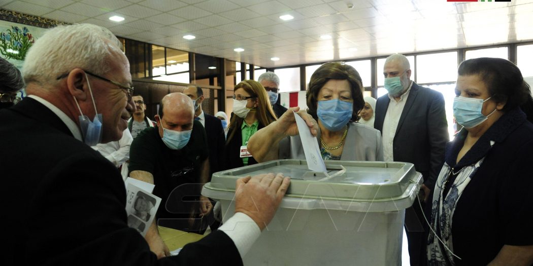 Damascus, (ST) – Vice President of the Syrian Arab Republic, Dr. Najah Al-Attar, voted in the presidential elections at the electoral center at the Al-Assad National Library in Damascus.