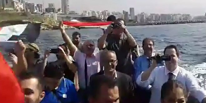 Some activists shared on social networking sites a video showing the participants on board of a boat raising the Syrian flag and chanting slogans supporting Syria and its army.