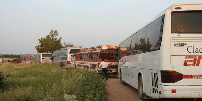 Damascus/Idleb – 22 buses have left Aleppo city towards Kefraya and al-Fouaa towns in Idleb countryside within the recent agreement which provides for evacuating terrorists from al-Yarmouk Camp, liberating the besieged people in the two towns and releasing those kidnapped  from Ishtabraq village on two stages.