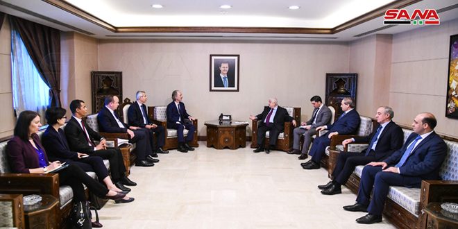 DAMASCUS,(ST)_Minister of Expatriates and Foreign Affairs Walid al-Mo’allem received the United Nations’ Special Envoy to Syria Geir Pedersen.