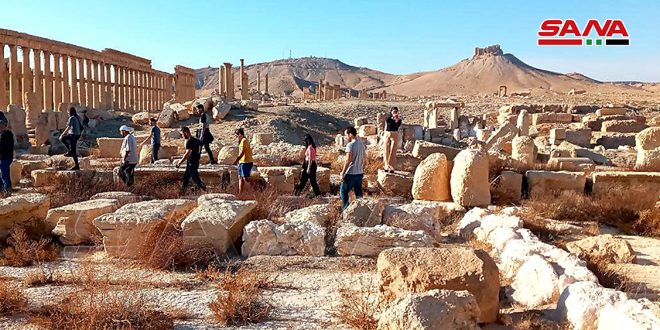 A group of tourists from different nationalities have visited the historical Syrian city of Palmyra in order to be briefed on its most important archeological landmarks and to document the destruction and vandalism inflicted upon the historical relics and tourist facilities in this city.