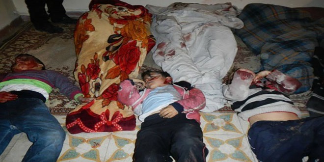 On Thursday at dawn, terrorists affiliated to the al-Nusra Front [Jabhat al-Nusra] and allied armed groups infiltrated into the town-located in the southern countryside of Hama- and killed scores of persons, including women, children and elderly.