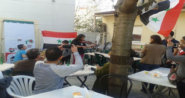 The event is characterized by participation of young persons and adults, who have expressed their solidarity with Syria, including some who played the Syrian anthem while others participated in drawing a picture of Syria name and map, expressing their love for Syria.