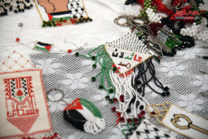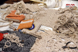 The two-day exhibition, which was opened on Friday at the headquarters of Wathiqat Wattan Foundation in Damascus, displayed a variety of handmade works of the Palestinian heritage, including various types of embroidered pieces, traditional textiles, wood carving figures, glass painting, and fabric recycling.