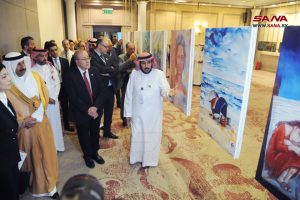 The meeting was accompanied by an exhibition entitled “Humanity of an Artist”, which includes paintings that reflect the human suffering resulting from wars and crises in Arab countries, and document the impact of humanitarian work and the heroism of volunteers.