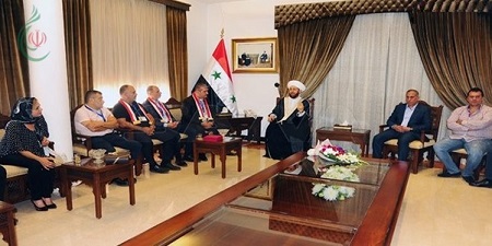 During a meeting with a delegation of the National Union of Syrian Expatriates in Sweden and Europe on August 3, Sheikh Hassoun called for conveying the reality of what has been taking place in Syria, and facing the misleading media campaigns by some Western media outlets to cover up the terrorists’ crimes against the Syrian people.