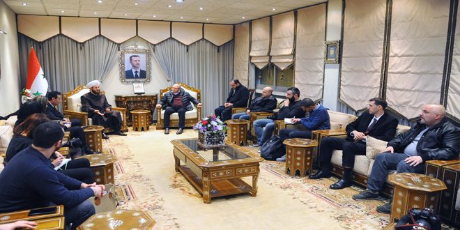 DAMASCUS, (ST)- Syria’s Grand Mufti Badr Eddin Hassoun has called on the Syrian expatriates to convey the real image about what is going on in Syria to the countries where they live and urged them to work as refute the claims being promoted in the misleading media outlets about events in Syria.
