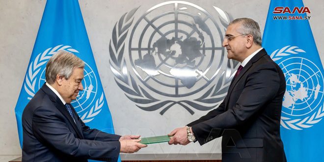 During the ceremony of accepting the credentials of Ambassador Qusay Al-Dahhak as Syria’s permanent representative to the United Nations, which took place at the headquarters of the international organization in New York, Guterres expressed his hope that security and stability and well-being will return to Syria and the Syrian people, noting the historical status and cultural heritage that Syria enjoys.