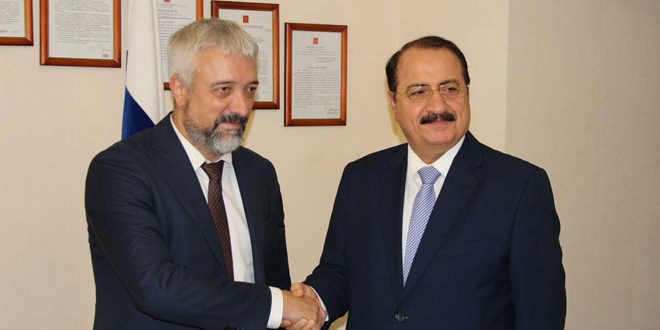 MOSCOW, (ST)_Syria’s Ambassador in Moscow Dr. Riyad Haddad on Monday discussed with Director of the Russian Agency for International Humanitarian Cooperation (Rossotrudnichestvo) Yevgeny Primakov the way of enhancing bilateral relations in the field of higher education and culture.