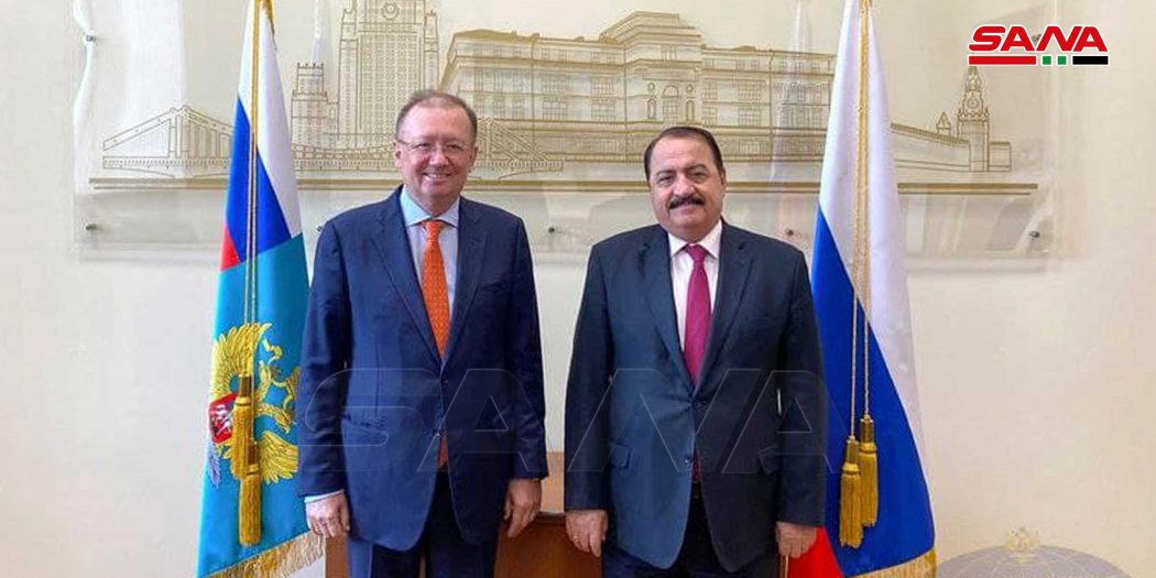 MOSCOW, (ST)_Syria’s Ambassador in Moscow Riyad Haddad reviewed on Tuesday with Director of Diplomatic Academy of the Russian Foreign Ministry Alexander V. Yakovenko the situation in the Middle East and the ways of settling the crisis in Syria.