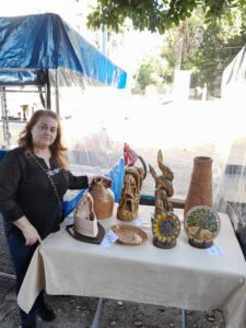 Sculptor Maha Yazji stressed to Syriatimes e-newspaper the importance of the bazzar in highlighting the deep-rooted rich Syrian heritage through the diversity of the works displayed and presenting them to the new generation in order to preserve and revive ancient heritage professions.She expressed her happiness at participating in the exhibition through several ceramic works that included plates bearing inscriptions such as the ‘Tree of Life ‘and pottery works such as jars.