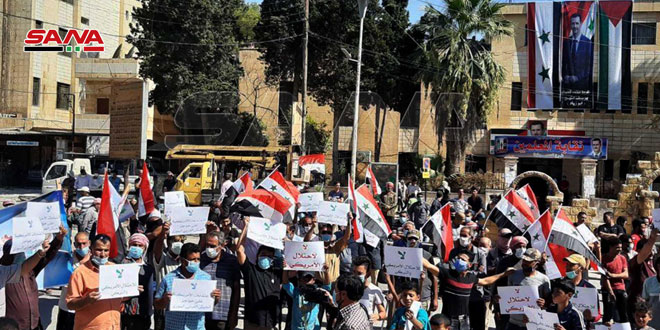 Hasaka (ST): The city of Hasaka witnessed today a protest stand denouncing the recent US attack against a checkpoint for the Syrian Arab army in al-Qameshli countryside. The participants demanded the withdrawal of the US and Turkish occupations from the Syrian territories.