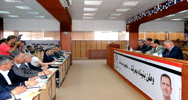 The participants called for strengthening national reconciliation that lead to a comprehensive inter- national dialogue on the Syrian territory, as the only way for the salvation of the country and bring stability and national sovereignty and the need for laws provided for reforming the public sector, especially the industrial sector as a guarantor for Syria’s stability and steadfastness, after it was subjected to vandalism and theft by armed terrorist organizations.