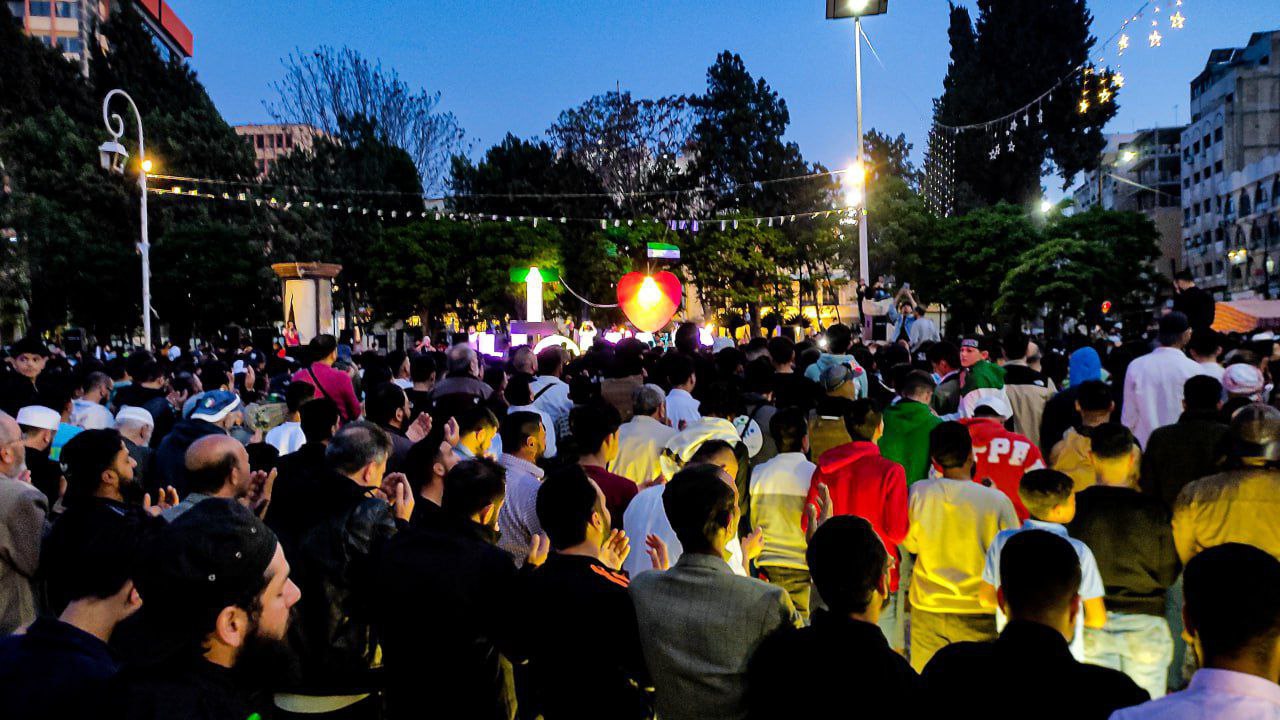 After the prayer, Sheikh Sahel Junaid delivered a speech in which he recalled this blessed memory: the sit-in of the people of Homs at Clock Square 14 years ago, demanding freedom and dignity. Their voices echoed “The people want to bring down the regime.”