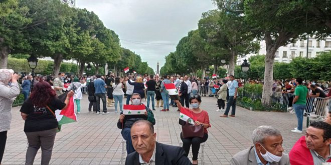 Poet Imaduddin al-Tunisi said the rally is part of the Tunisians’ popular moves to put pressure on the Tunisian government to restore diplomatic ties with Syria and reopen the Syrian embassy in Tunisia, noting that the deep-rooted brotherly relations between the peoples of the two countries have not been affected despite some parties attempts to undermine them.