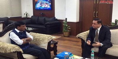 During his meeting with Syrian Ambassador to India Dr. Riyad Abbas, he praised Syria’s victory over terrorism, which came as a result of the sacrifices made by the Syrian Arab Army and the steadfastness of the people and its leadership, expressing his desire to visit Syria to develop bilateral relations and cooperation between the two countries in the fields of transport and manufacturing industries.