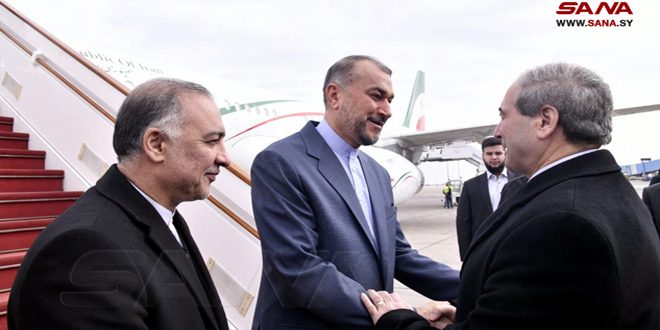 Iranian Foreign Minister Hussein Amir Abdollahian on Saturday arrived at Damascus International Airport in an official visit to Syria during which he will hold talks with senior Syrian officials on regional and international developments as well as on issues of common interest.