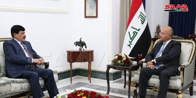 BAGHDAD, (ST)_Iraq’s President Barham Saleh and Syria’s Ambassador in Baghdad Sultan Jad’an Al-Dandah discussed on Monday bilateral relations and the ways of developing them.