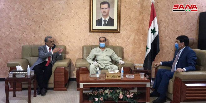 A meeting took place between Syria’s Ambassador in Baghdad Satam Jada’an al-Dandah and a delegation from the Arab Current in Iraq headed by its Secretary-General Zeidan al-No’aimi and President of the Iraqi Popular Committee for Supporting Syria and the Resistance Abdul-Reda al-Hamed and some representatives of national Iraqi movements.