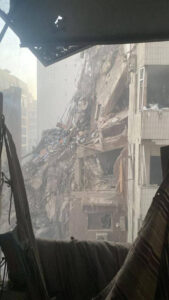 The Lebanese National News Agency said that the aggression led to the collapse of a building next to Bahman Hospital in the Haret Hreik area in the southern suburb and the injury of a number of civilians.